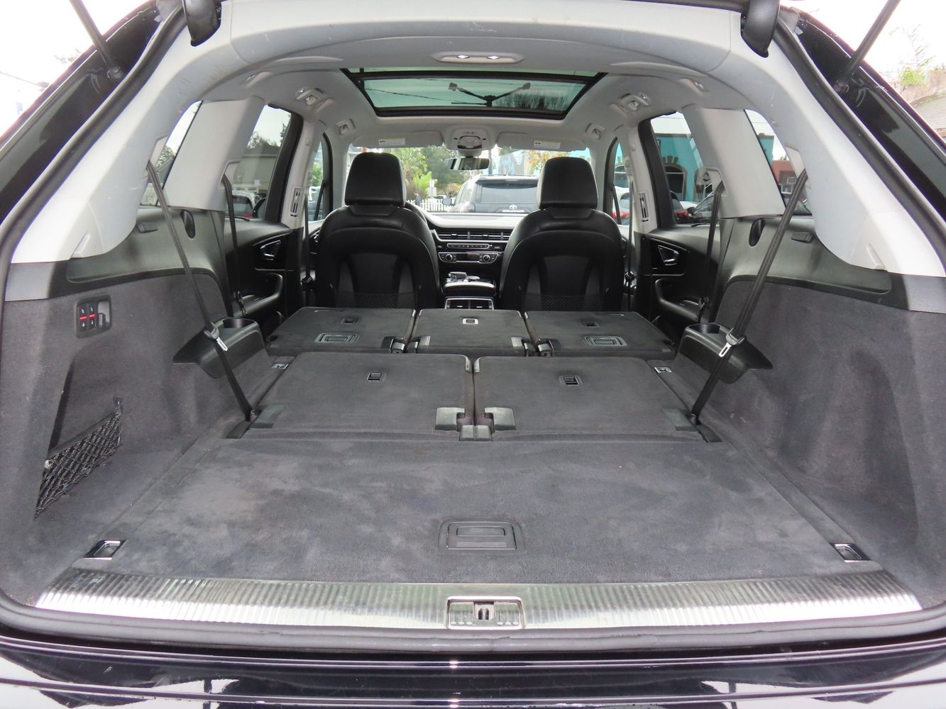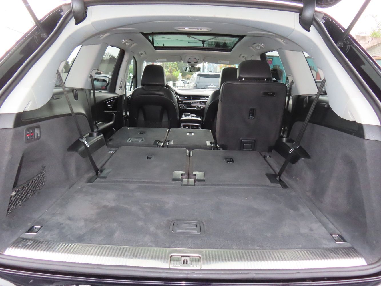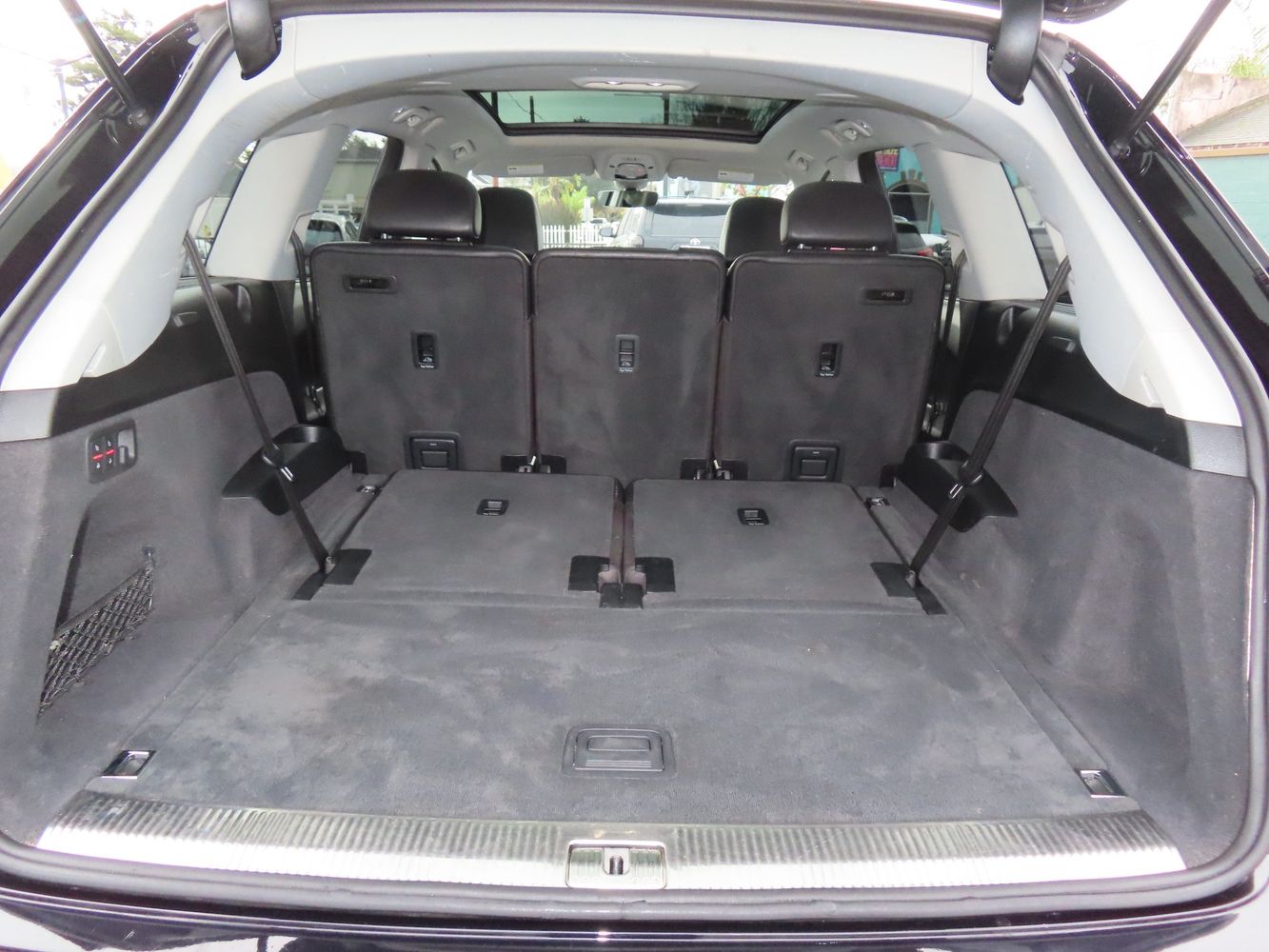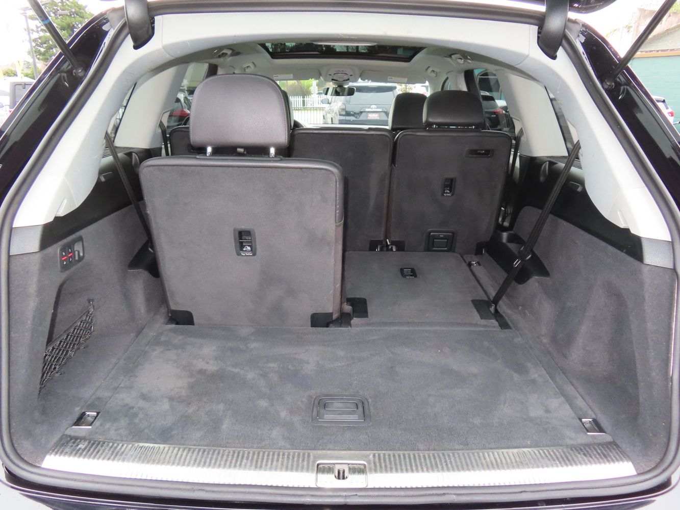 Third-row seatback upholstery: Carpet third-row seatback upholstery